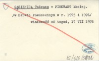GˇSIENICA Tadeusz PINKWART Maciej (w Słowie Powszechnym w r. 1975 i 1976) wiadomo¶ć od tegoż, 17 VII 1976