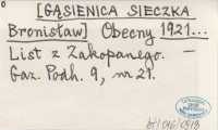 Obecny [GˇSIENICA SIECZKA Bronisław] 1921... List z Zakopanego.