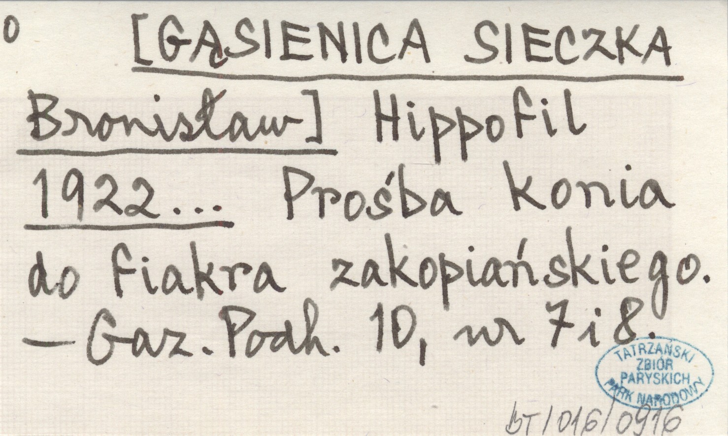 Hippofil [GĄSIENICA SIECZKA Bronisław] 1922... Prośba konia do fiakra zakopiańskiego.