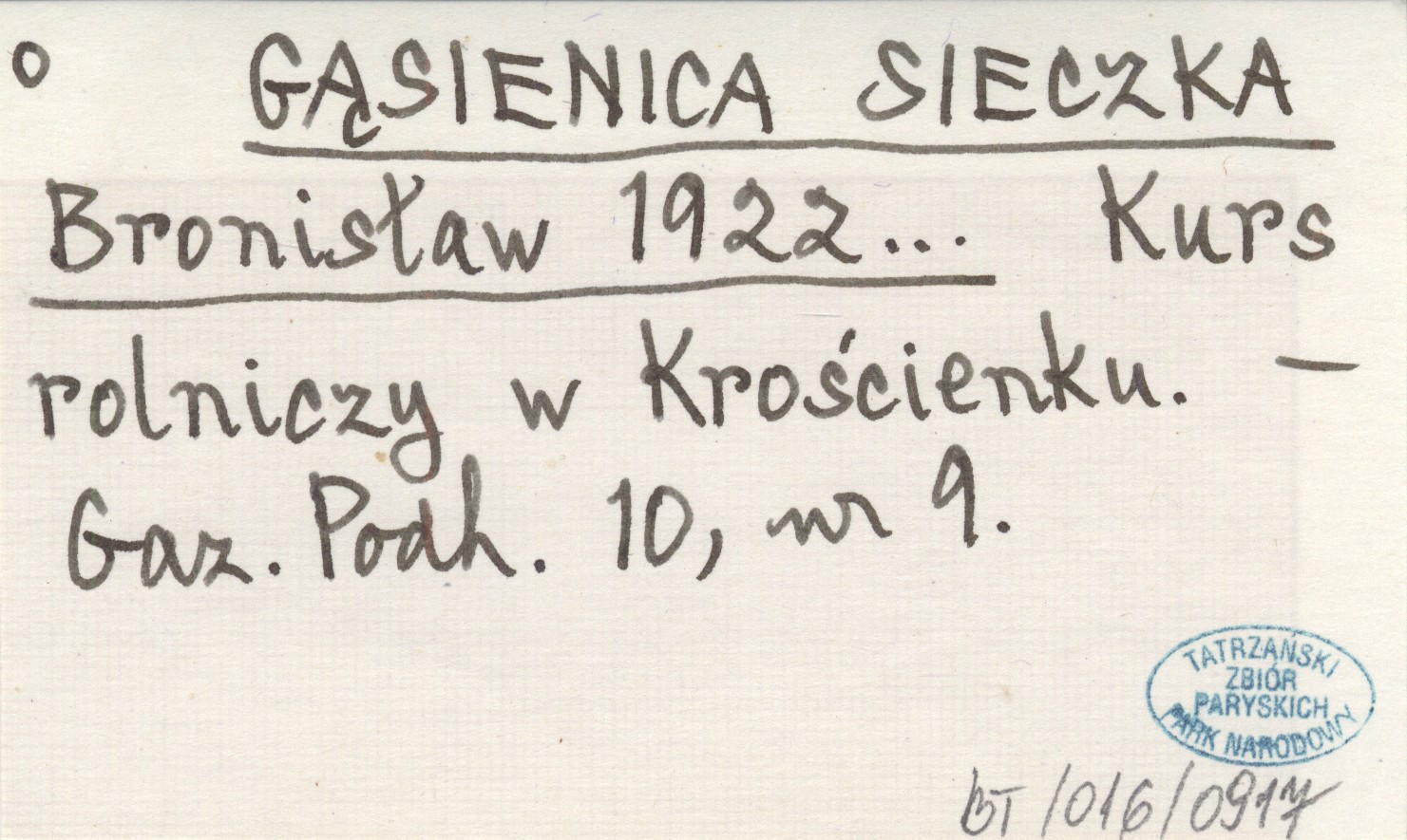 GĄSIENICA SIECZKA Bronisław 1922... Kurs rolniczy w Krościenku.