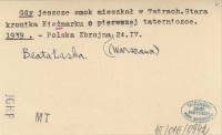 Gdy jeszcze smok mieszkał w Tatrach. Stara kronika Kieżmarku o pierwszej taterniczce. 1939