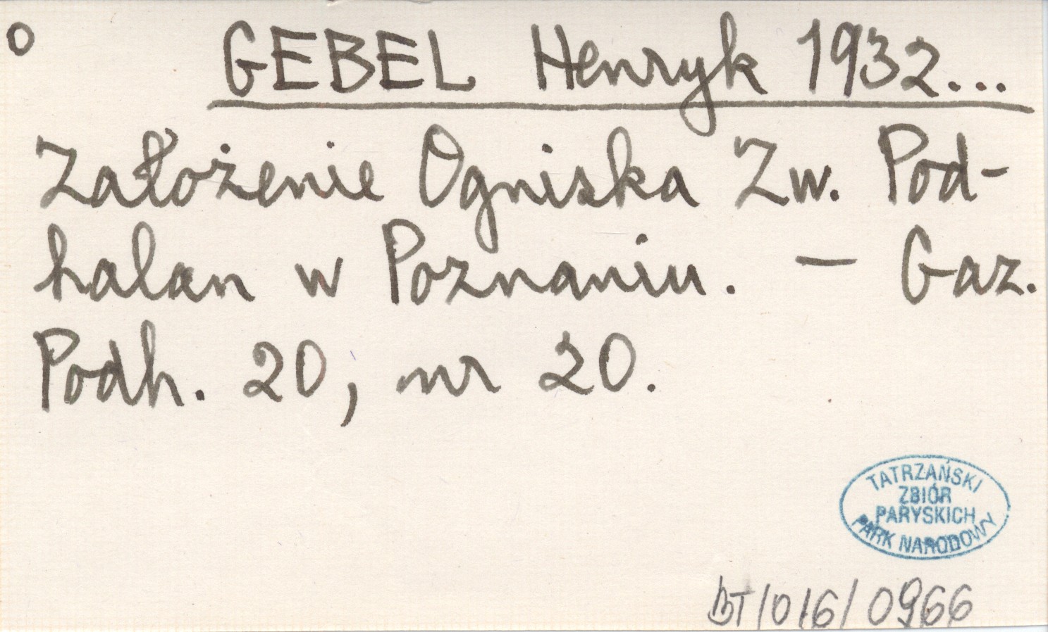 GEBEL Henryk 1932... Założenie Ogniska Zw. Podhalan w Poznaniu.