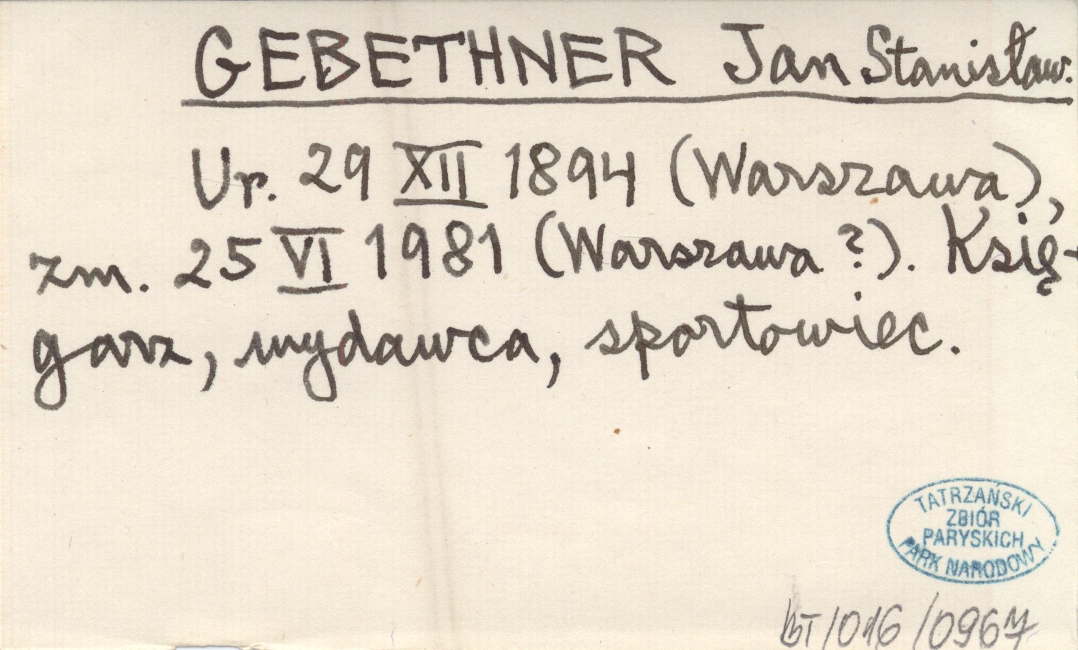 Ur. 29 XII 1894 (Warszawa), zm. 25 VI 1981 (Warszawa ?). Księgarz, wydawca, sportowiec.