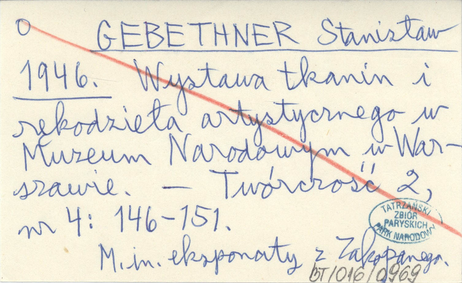GEBETHNER Stanisław 1946 Wystawa tkanin i rękodzieła artystycznego w Muzeum Narodowym w Warszawie.