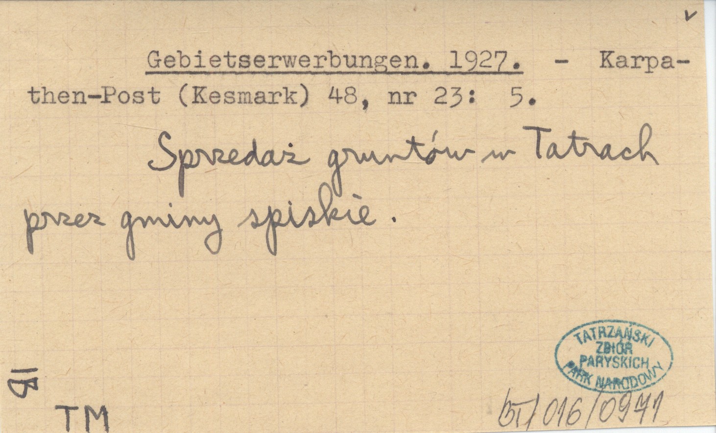 Karpathen-Post (Kesmark) , 48, nr 23: 5. Sprzedaż gruntów w Tatrach przez gminy spiskie.