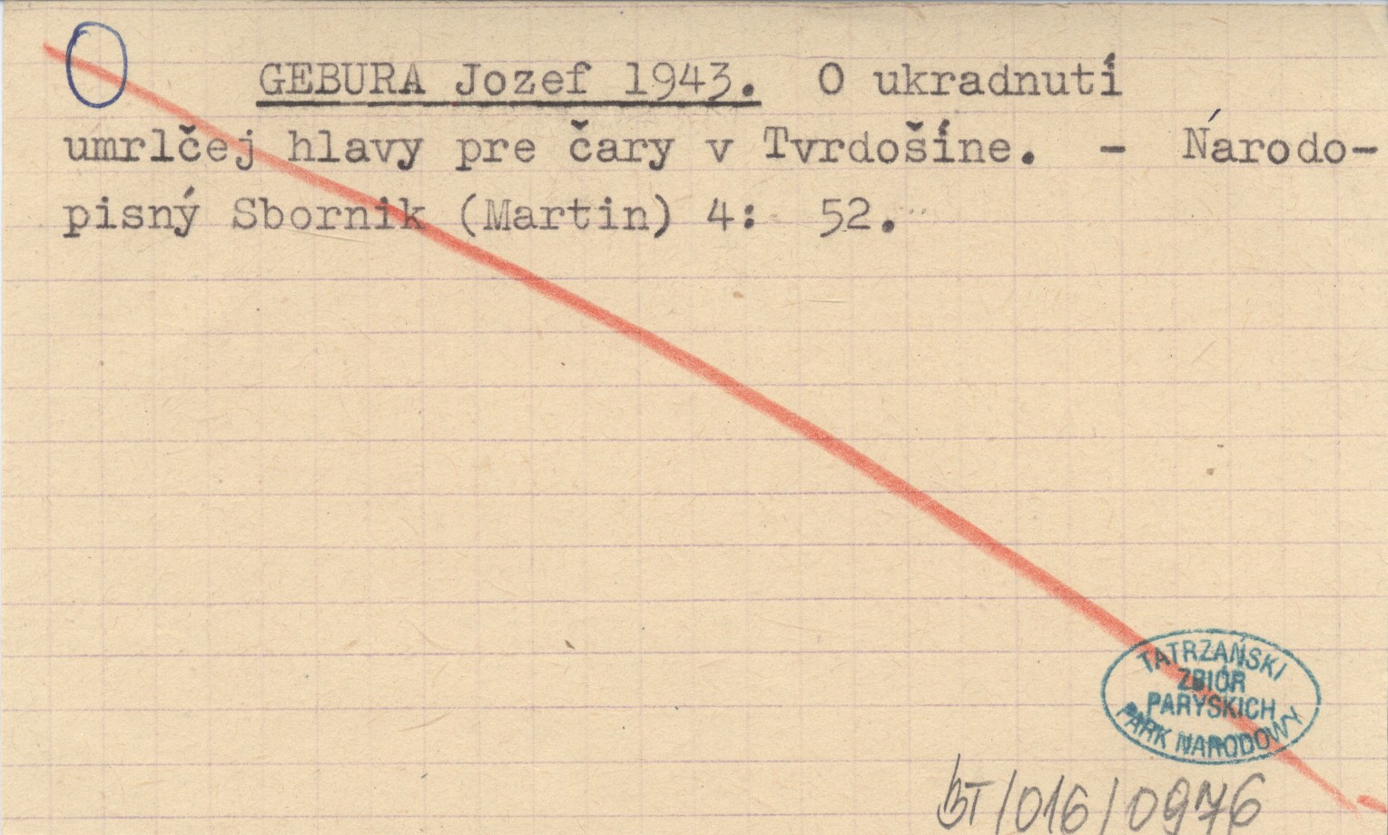 GEBURA Jozef 1943 O ukradnutí umrlčej hlavy pre čary v Tvrdošíne.