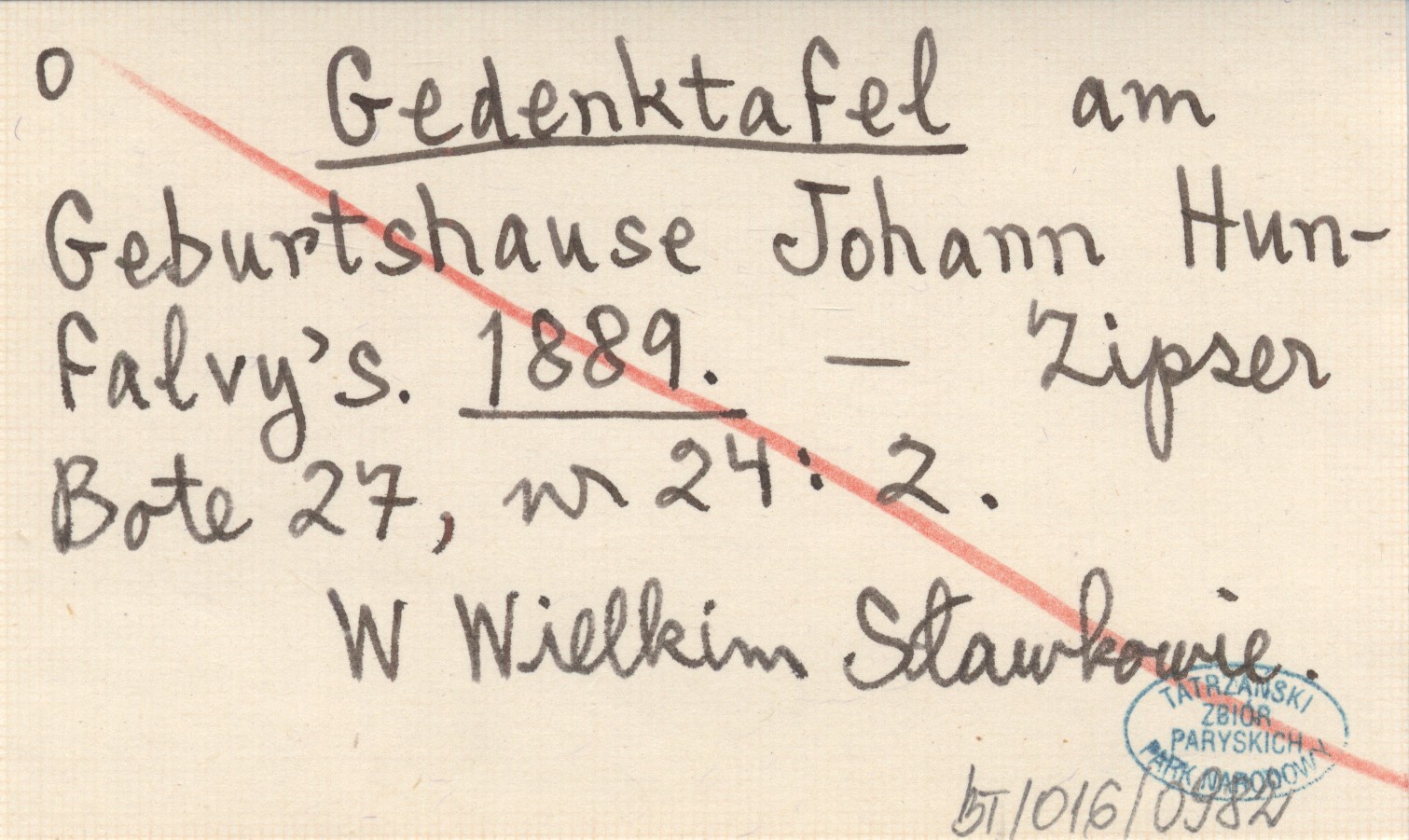 Gedenktafel am Geburtshause Johann Hunfalvy's. 1889