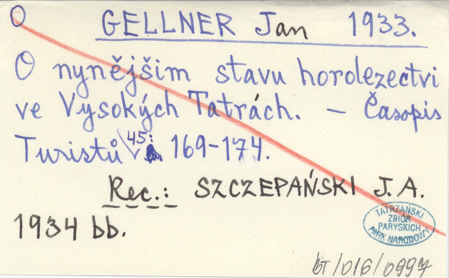 Časopis Turistů, 45: 169-174. REC: SZCZEPAŃSKI J. A. 1934 bb