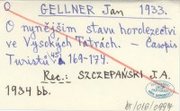 GELLNER Jan 1933 O nynějšim stavu horolezectvi ve Vysokých Tatrách.