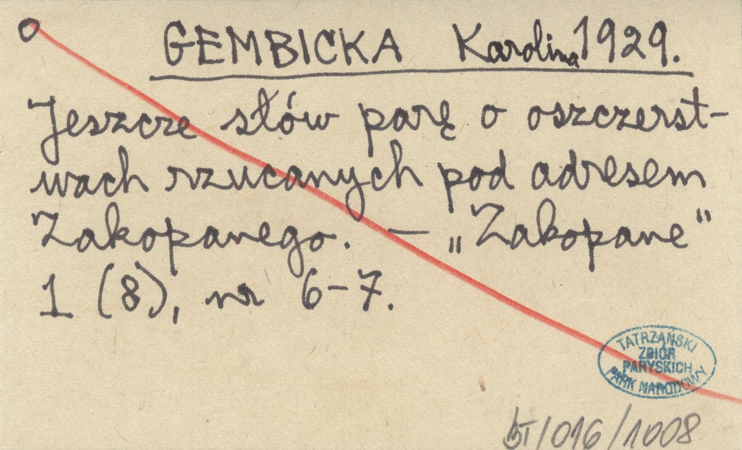GEMBICKA Karolina 1929 Jeszcze słów parę o oszczerstwach rzucanych pod adresem Zakopanego.