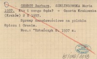 GEMROT Barbara SZELINGOWSKA, Maria. ; 1957 Poza ramami schematu.