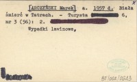 a. [ARCZYŃSKI Marek] 1957 d Biała śmierć w Tatrach.