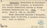 Generosis, Prudentibus ac Circumspectis Dominis Iudici primario, ac Senatoribus toti denique Communitati Liberae ac Regiae Civitatis Kesmarkiensis etc. 1710