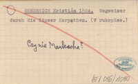 GENERSICH Kristián 1804 Wegweiser durch die Zipser Karpathen. (V rukopise.).