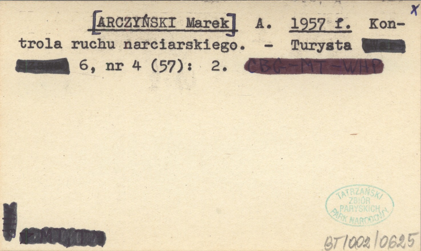 A. [ARCZYŃSKI Marek] 1957 f Kontrola ruchu narciarskiego.