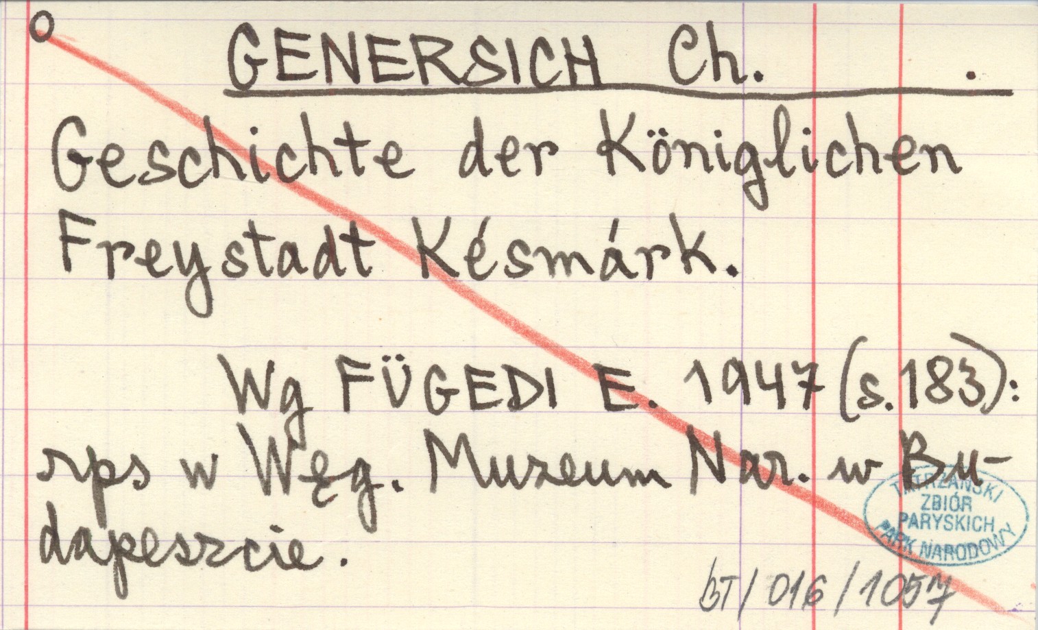 GENERSICH Ch. Geschichte der Königlichen Freystadt Késmárk.
