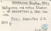 GENERSICH Christian 1807 c Haligovecz und rothes Kloster.