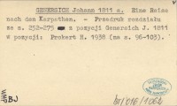 GENERSICH Johann 1811 a Eine Reise nach den Karpathen.