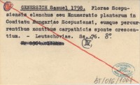 GENERSICH Samuel 1801 Catalogus Plantarum rariorum Scepusii, anno 1801 in autumno, in usum amicorum suorum conscriptus.
