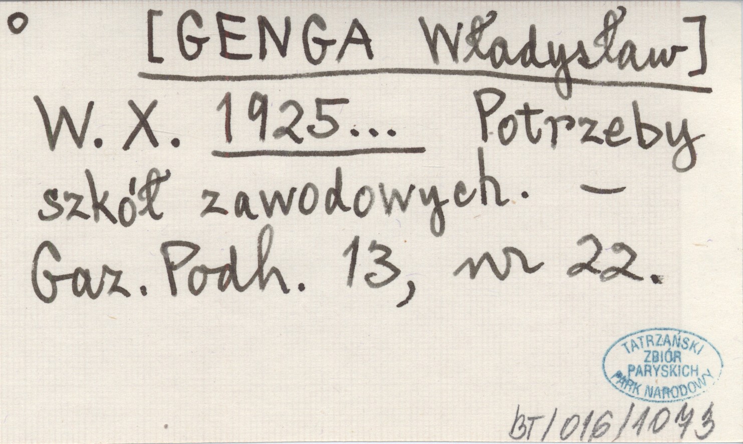 W. X. [GENGA Władysław] 1925... Potrzeby szkół zawodowych.