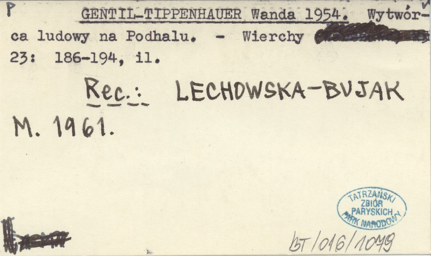 GENTIL-TIPPENHAUER Wanda 1954 Wytwórca ludowy na Podhalu.