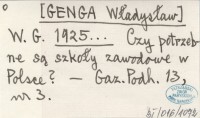 W. G. [GENGA Władysław] 1925... Czy potrzebne są szkoły zawodowe w Polsce?