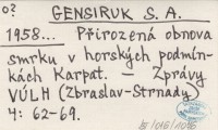 GENSIRUK S. A. 1958... Přirozená obnova smrku v horských podmínkách Karpat.