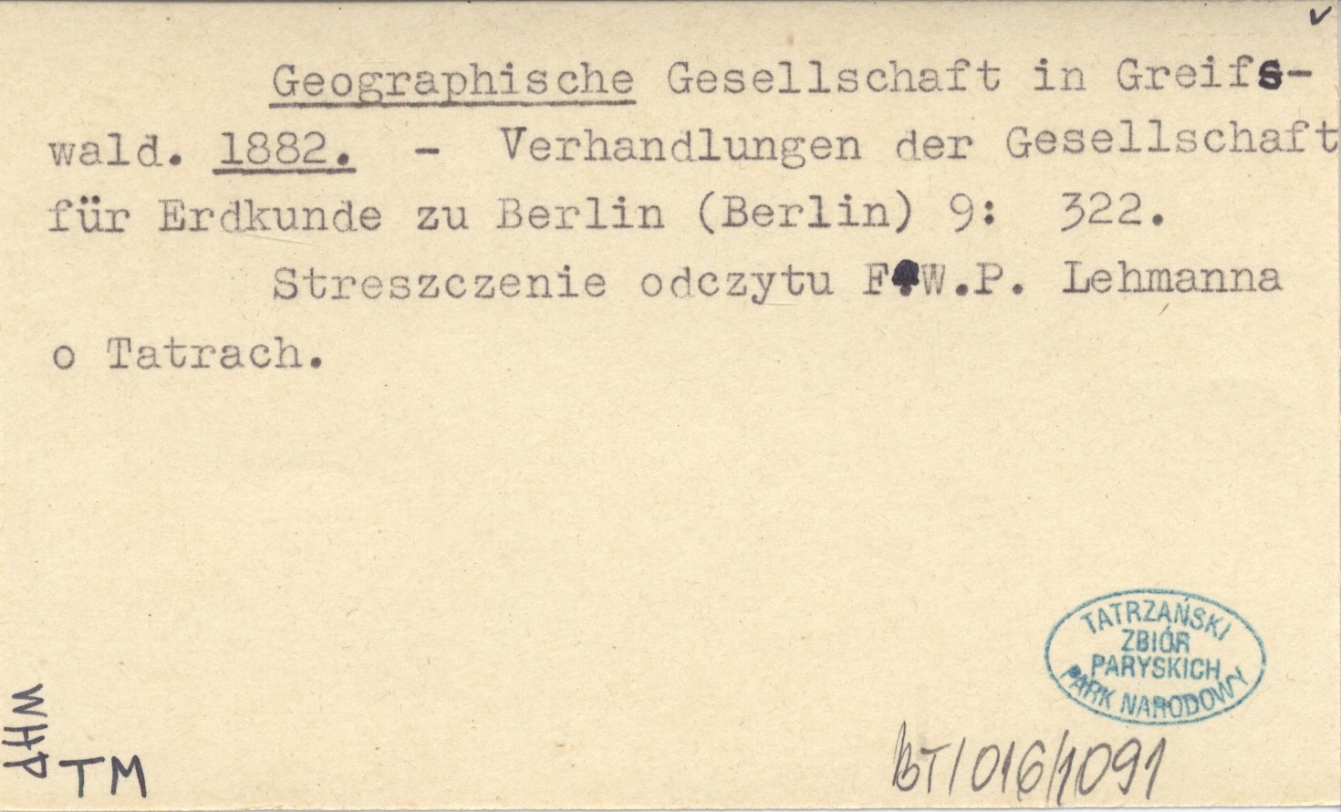 Verhandlungen der Gesellschaft für Erdkunde zu Berlin (Berlin) , 9: 322. Streszczenie odczytu F.W.P. Lehmanna o Tatrach.