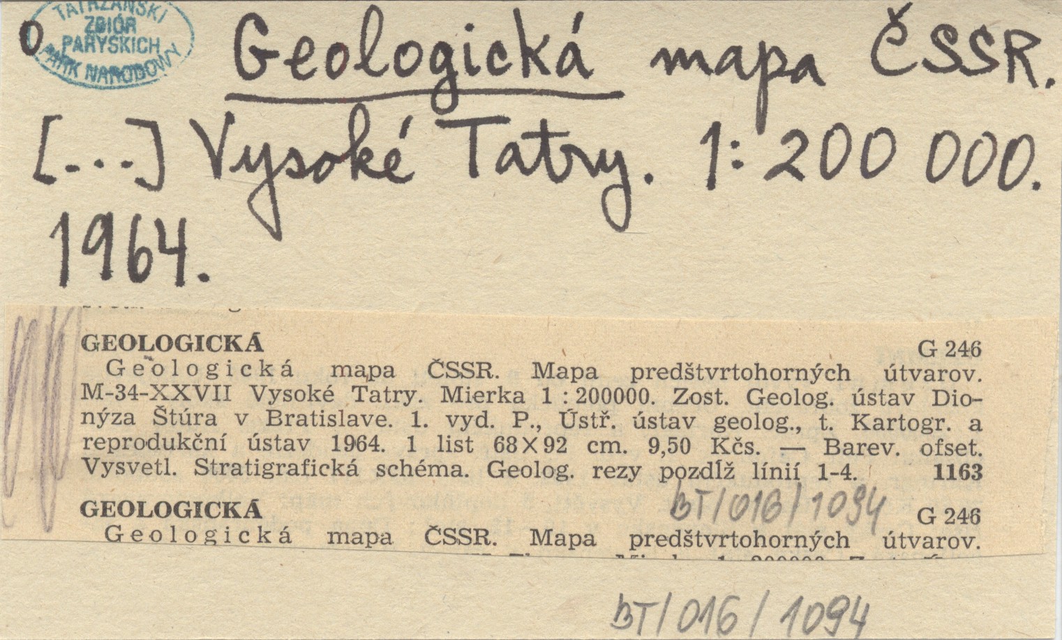Projekt Digitalizacja fiszek z Bibliografi± Tatr i Podtatrza Witolda Henryka Paryskiego jest finansowany ze ¶rodków Ministra Kultury i Dziedzictwa Narodowego oraz Tatrzańskiego Parku Narodowego.