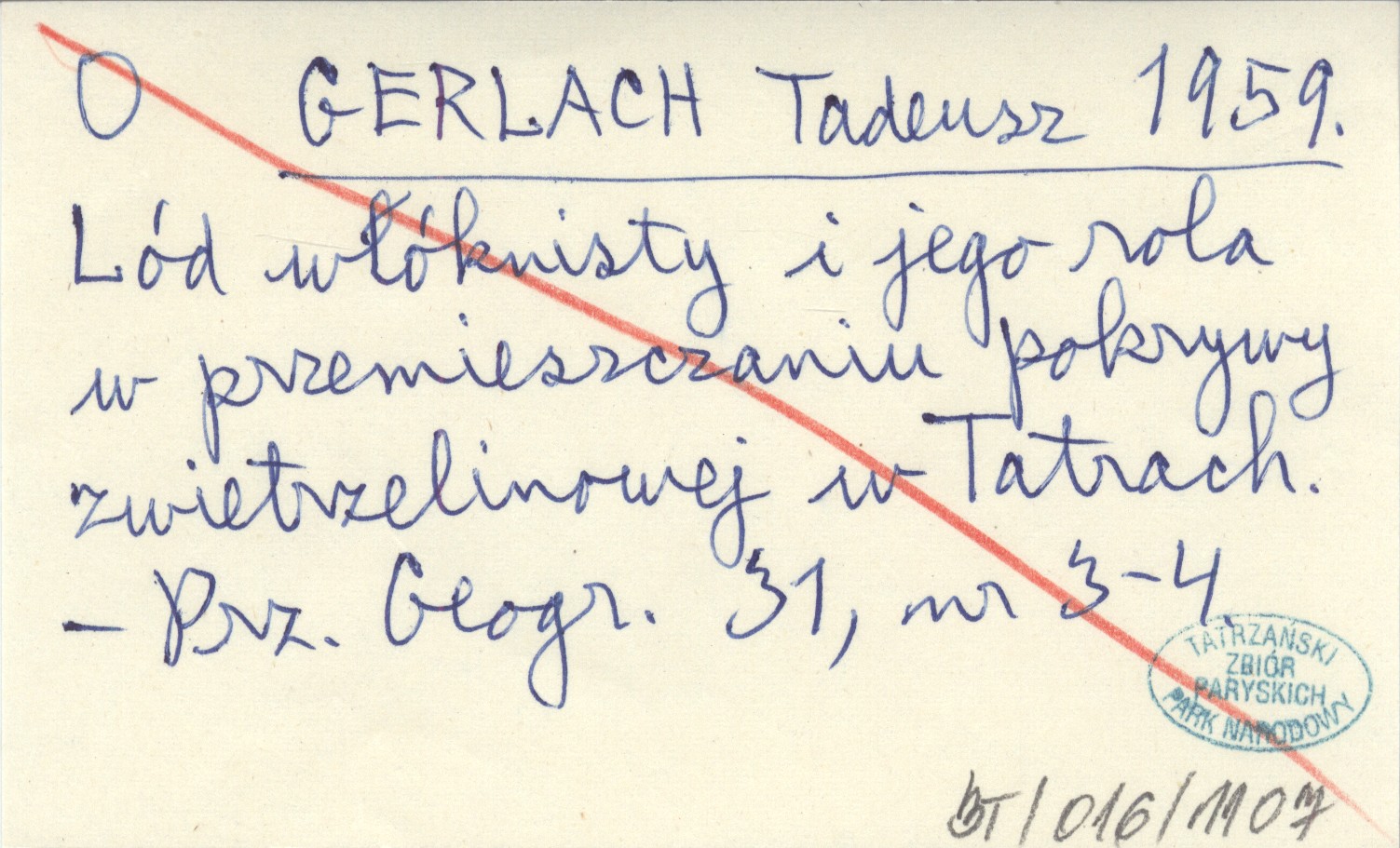 GERLACH Tadeusz 1959 Lód włóknisty i jego rola w przemieszczaniu pokrywy zwietrzelinowej w Tatrach.