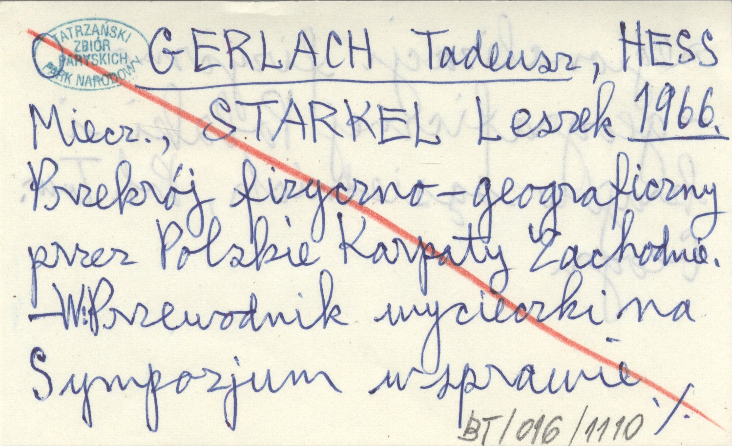 GERLACH Tadeusz HESS, Miecz. ; STARKEL, Leszek. ; 1966 Przekrój fizyczno-geograficzny przez Polskie Karpaty Zachodnie.