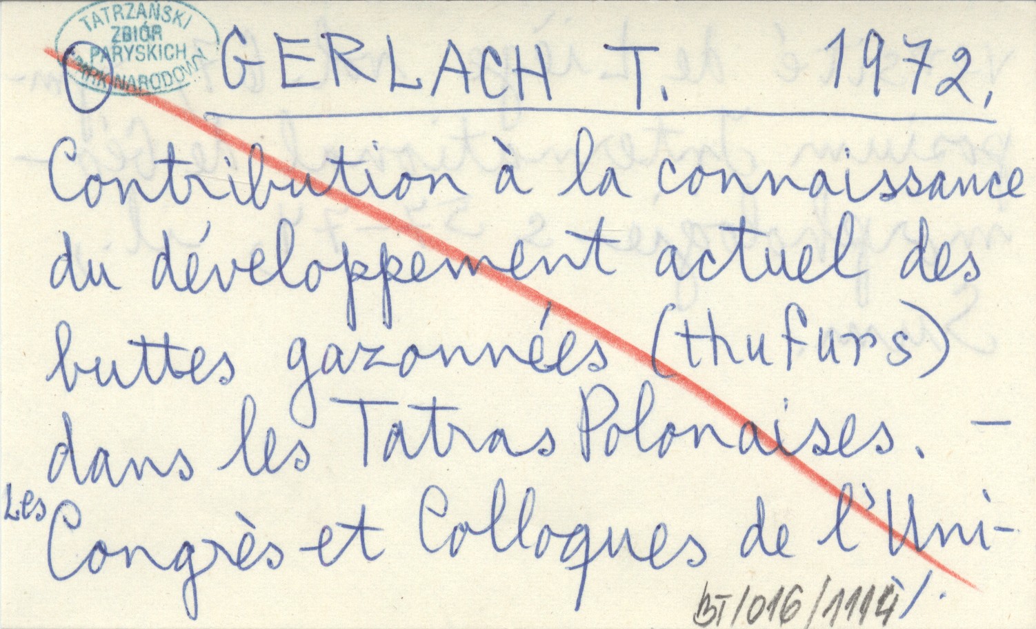 GERLACH T. 1972 Contribution á la onnaissance du développement actuel des buttes gazonnées (thufurs) dans les Tatras Polonaises.