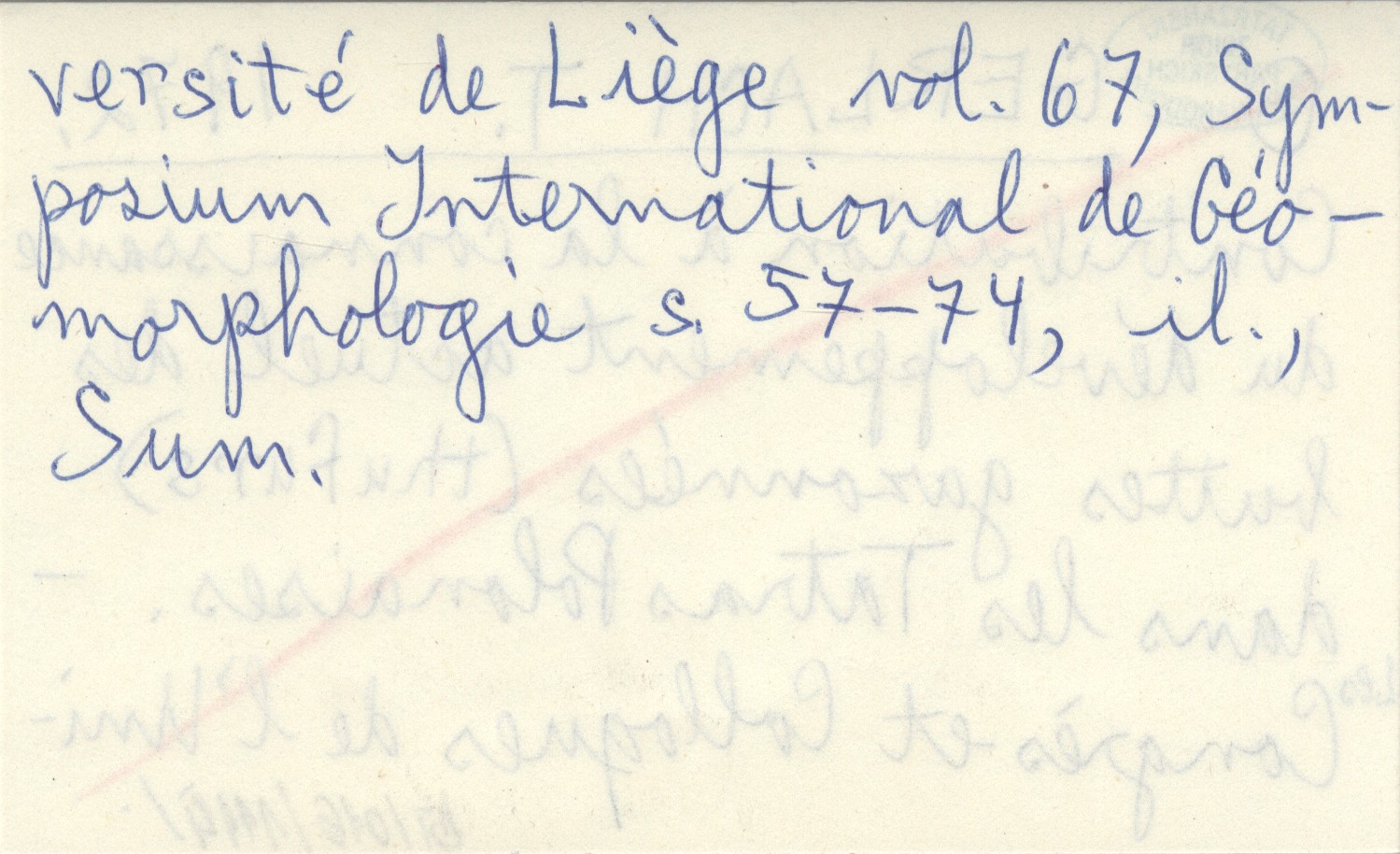 Les Congrés et Collogues de l'Université de Liége vol. 67, Symposium International de Géomorphologie, S. 57-74, il., Sum.