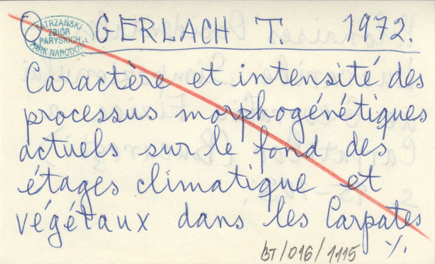 GERLACH T. 1972 Caractére et intensité des processus morphogénétiques actuels sur le fond des étages climatique et végétaux dans les Carpates Polonaises Occidentales.