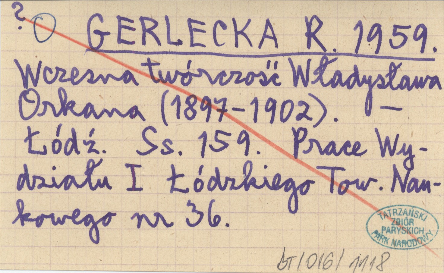 GERLECKA R. 1959 Wczesna twórczość Władysława Orkana (1897-1902).