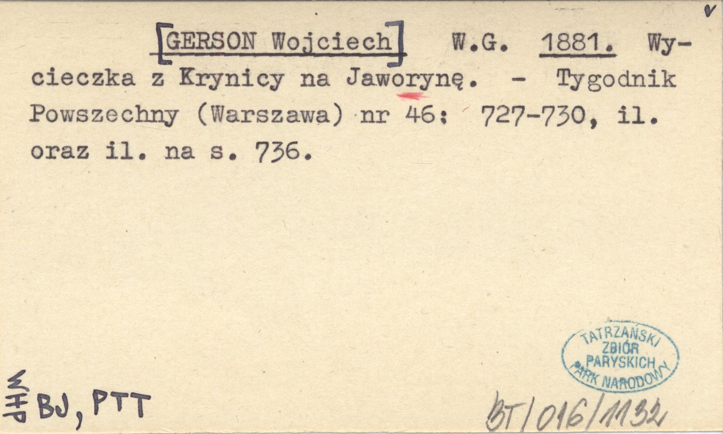 W. G. [GERSON Wojciech] 1881 Wycieczka z Krynicy na Jaworynę.
