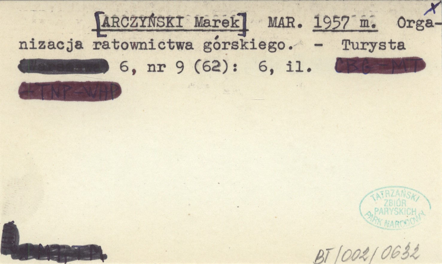 MAR. [ARCZYŃSKI Marek] 1957 m Organizacja ratownictwa górskiego.