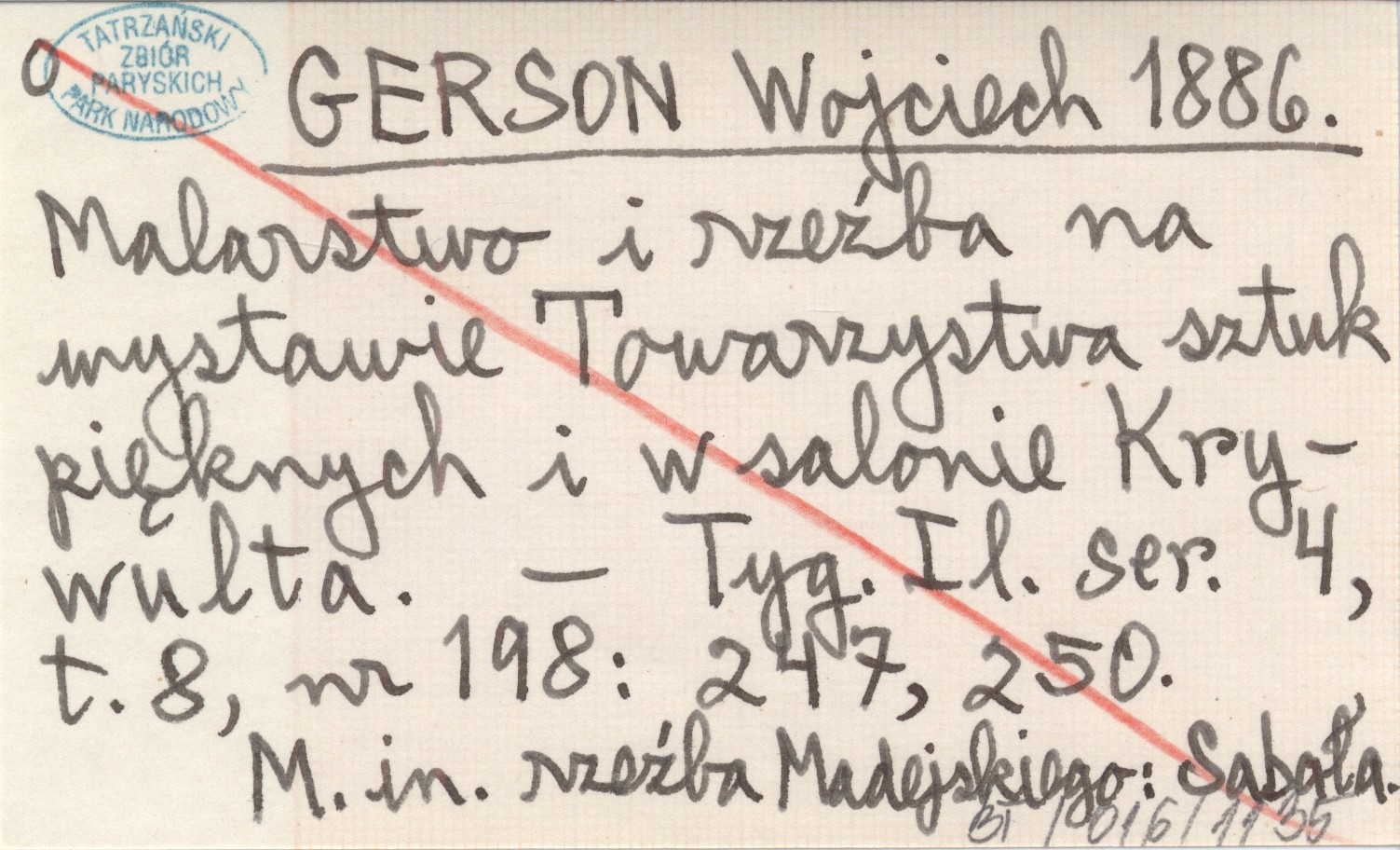GERSON Wojciech 1886 Malarstwo i rzeźba na wystawie Towarzystwa sztuk pięknych i w salonie Krywulta.