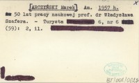 Am. [ARCZYŃSKI Marek] 1957 h 50 lat pracy naukowej prof. dr Władysława Szafera.