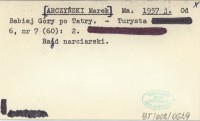Ma. [ARCZYŃSKI Marek] 1957 j Od Babiej Góry po Tatry.