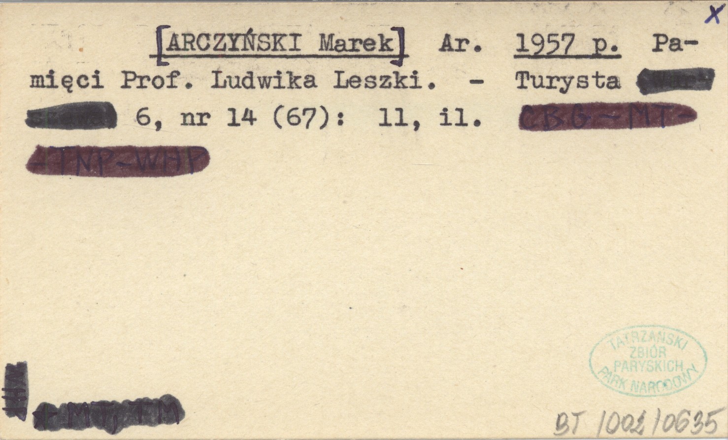 Ar. [ARCZYŃSKI Marek] 1957 p Pamięci Prof. Ludwika Leszki.