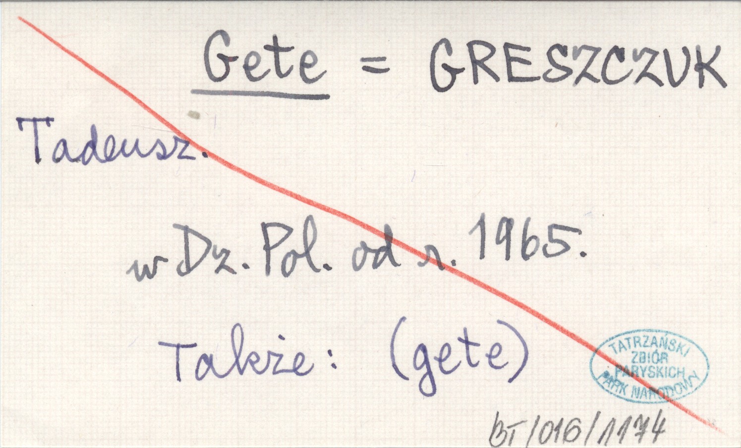 Gete GRESZCZUK Tadeusz w Dz. Pol. od r. 1965. Także: (gete)