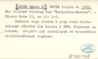 [GEYER Gyula G.] GEYER, Julius G. ; 1881 Ein kleiner Beitrag zum "Karpathen-Museum".