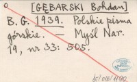 B. G. [GĘBARSKI Bohdan] 1939 Polskie pisma górskie.