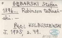 GĘBARSKI Stefan 1910 Robinson tatrzański. Opowiadanie z pierwszej połowy XIX stulecia.