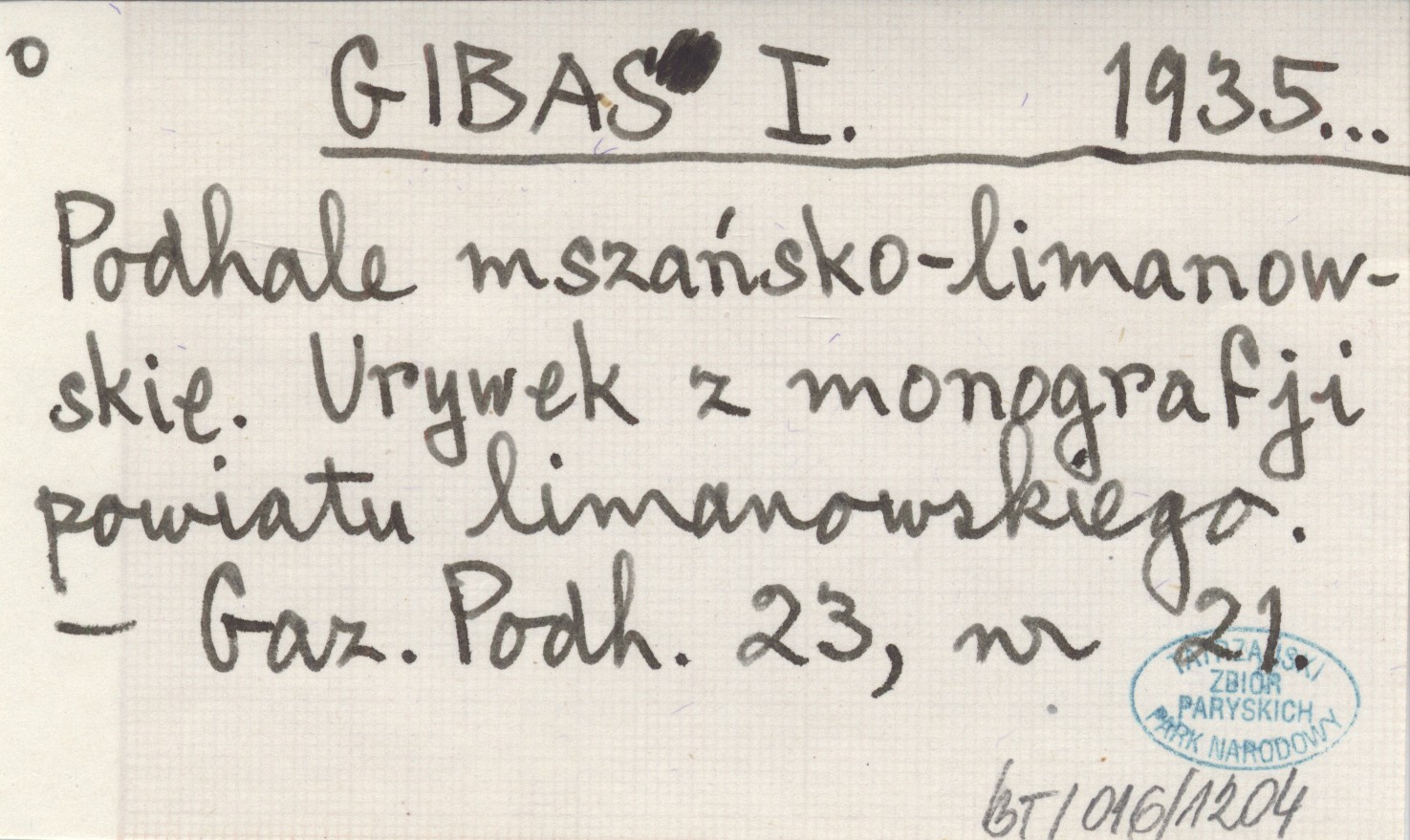 GIBAS I. 1935... Podhale mszańsko-limanowskie. Urywek z monografji powiatu limanowskiego.