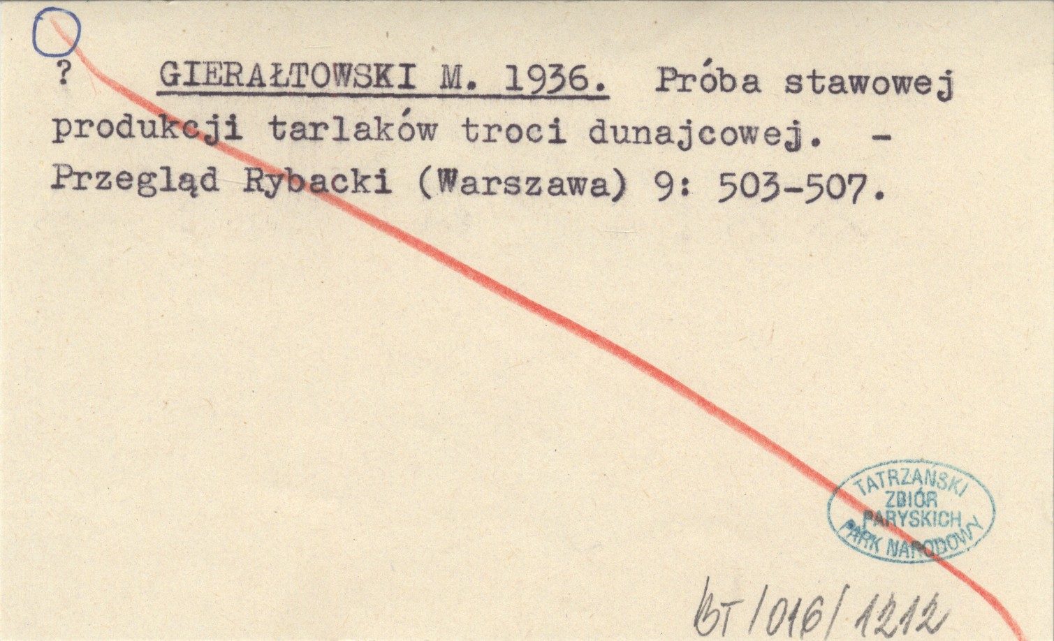 GIERAŁTOWSKI M. 1936 Próba stawowej produkcji tarlaków troci dunajcowej.
