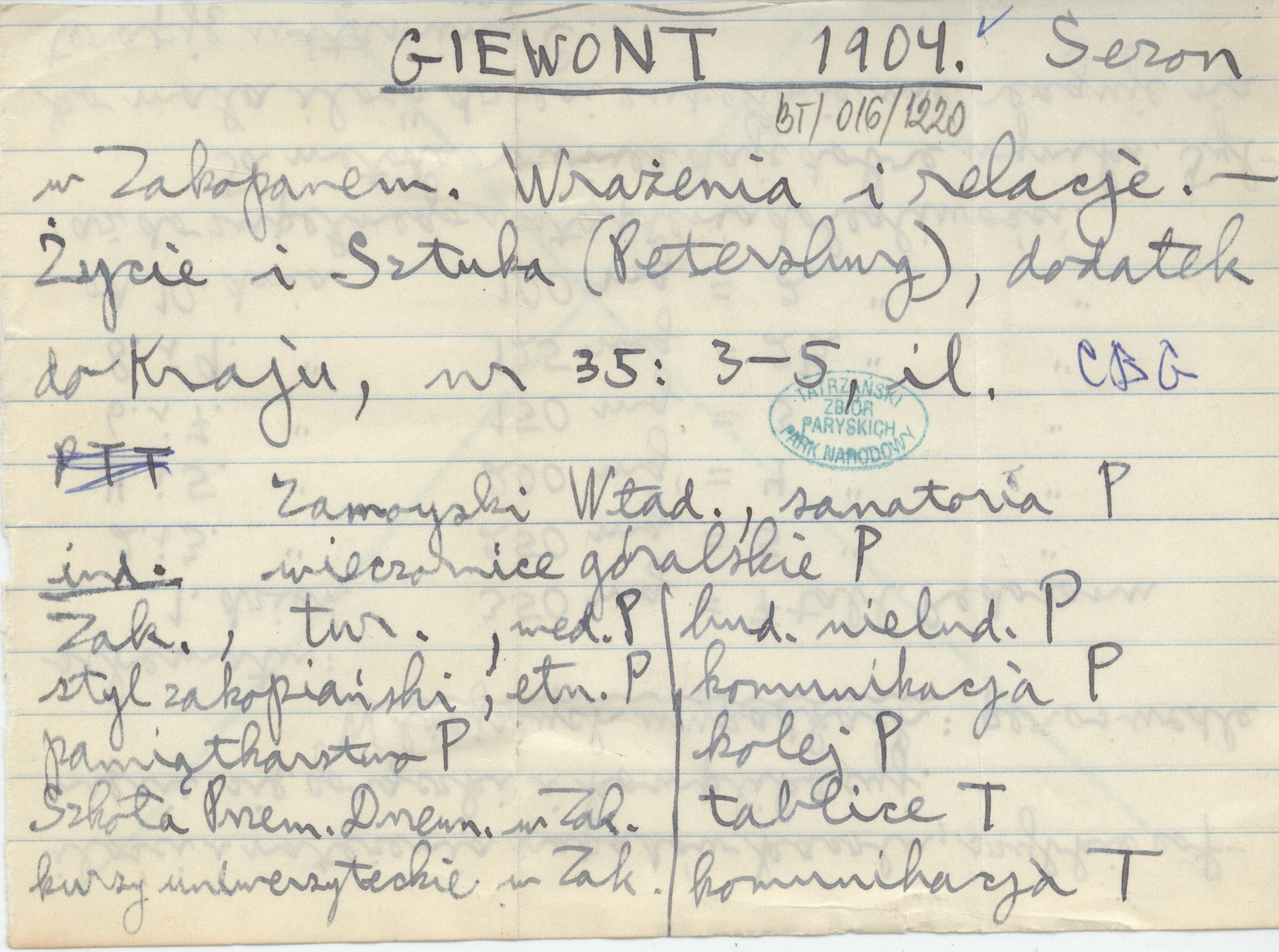 Giewont 1904 Sezon w Zakopanem. Wrażenia i relacje.