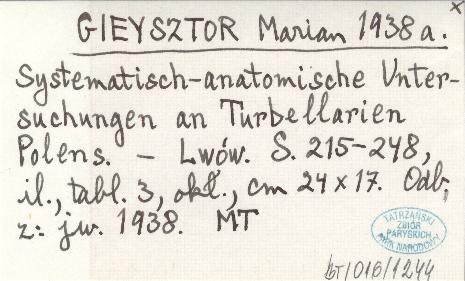 GIEYSZTOR Marian 1938 a Systematisch-anatomische Untersuchungen an Turbellarien Polens.