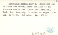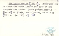 GIEYSZTOR Marian 1937 a Remarques sur la faune des Turbellariés des lacs et des torrents des Tatras. (Note préliminaire.).